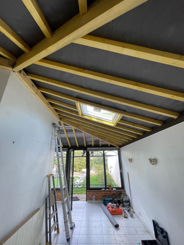 Nous assurons l’isolation du toit et des combles, par la pose d’isolants performants (laine minérale, panneaux rigides ou isolant mince réfléchissant) directement sous la couverture. Cette mise en œuvre garantit une continuité de l’isolation, limite les ponts thermiques, améliore l’étanchéité à l’air et optimise la performance énergétique globale du bâtiment, conformément aux normes en vigueur.