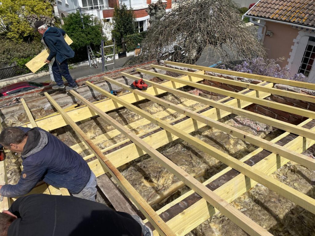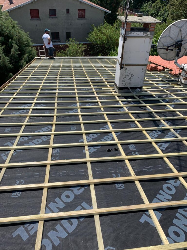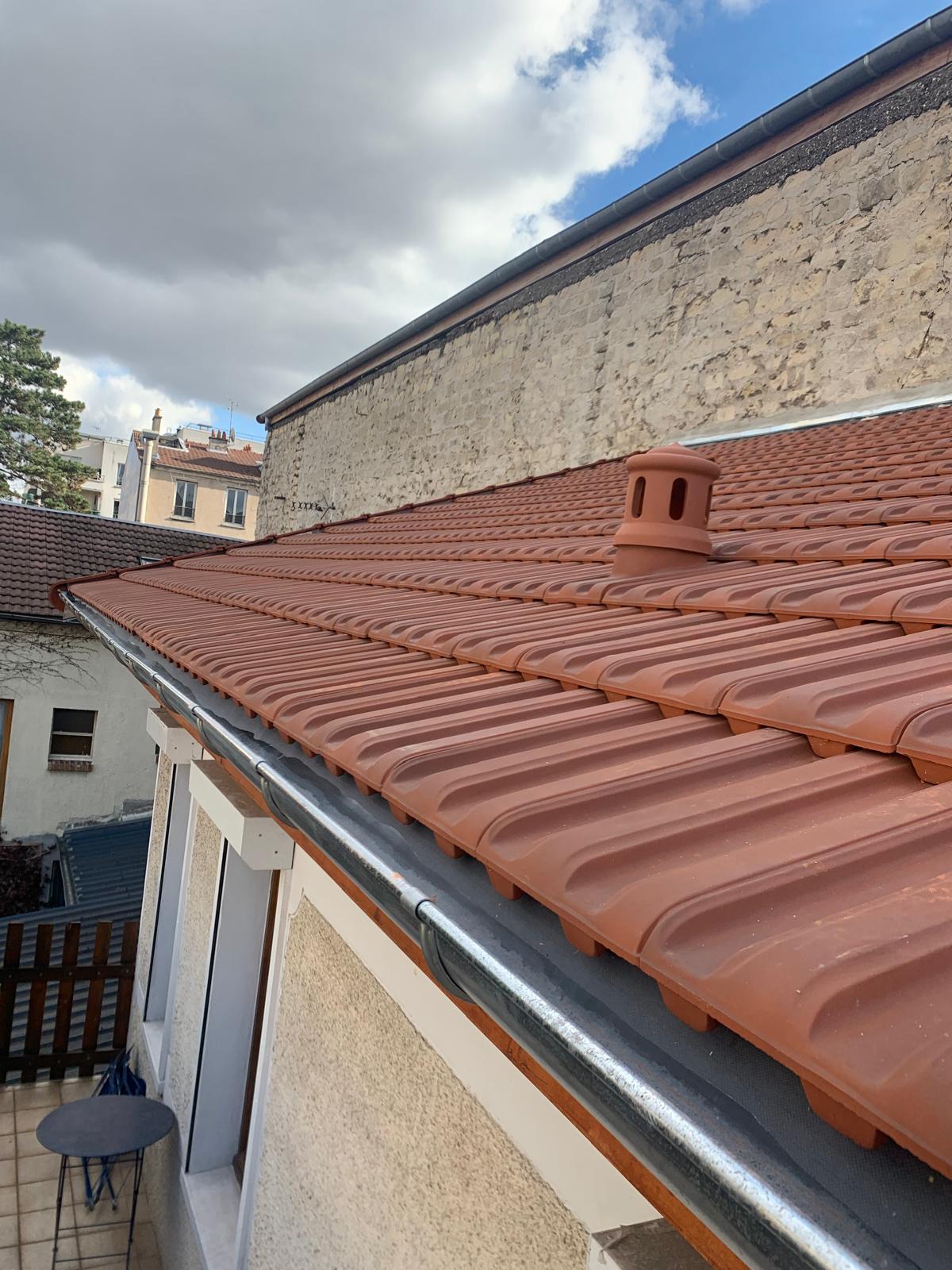 Toiture neuve posée sur une extension. Étanchéité parfaite et finitions soignées.
