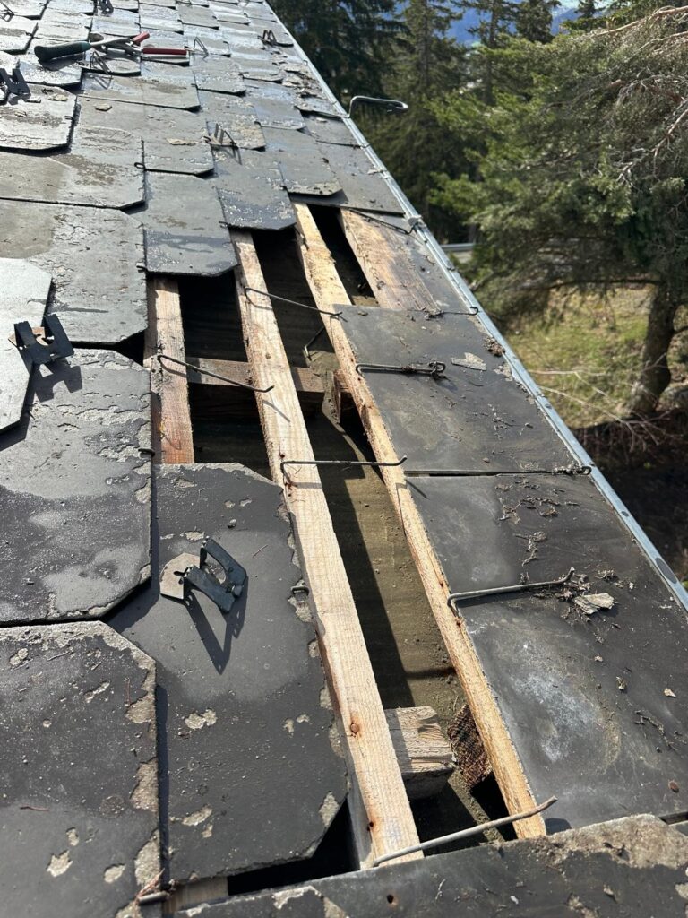 Faîtage affaissé repris entièrement. Travail propre et durable.